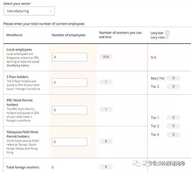 按照制造业的配额,雇主每聘请4个本地人,才能聘6个外劳,而这4个本地人的月入都要达到1300新币。而这6个外劳中还规定,只能有一名中国国籍的WP,一名S Pass的国籍没有限制。