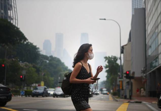 昨天,新加坡全岛出现烟霾情况,空气中弥漫着烧焦味。