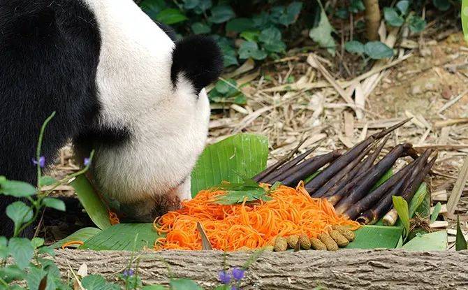 大熊猫凯凯和嘉嘉这个月过生日啦!新加坡河川生态园精心准备了“长寿面”为他们庆生~