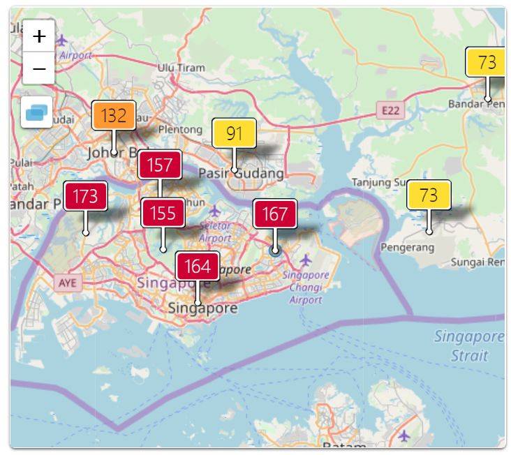 新加坡国家环境局的网站显示,下午4点,新加坡西部的24小时空气污染指数为103点,今年首次进入不健康水平。新加坡西部的一小时悬浮颗粒PM2.5浓度,也在一度在下午4点达每立方米158微克,处于高水平。