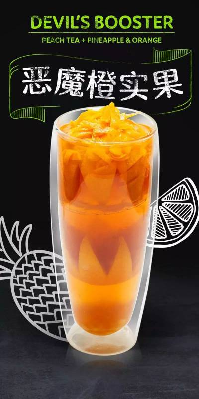 这是一杯与众不同的水果茶,它喝得是茶底最纯正的口感,茶才是主角,水果只是配角。茶叶均来自台湾高山上的高质量茶叶。切成小块的水果与青茶茶底相互碰撞,再加入秘制的凤梨酱后的水果茶清新酸甜,口感丰富。