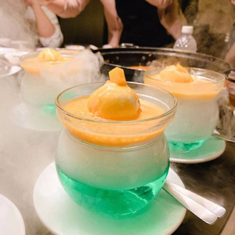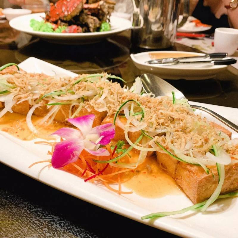 他们是有多人套餐的,我们9个人点的S$738那款,然后又加了一盘馒头(沾辣椒螃蟹巨巨巨好吃!)和一只蟹,分别做了一只半的辣椒螃蟹和一只半的黑椒蟹。里面的香芒椰子冻和豆腐也是绝味,虾也很不错!