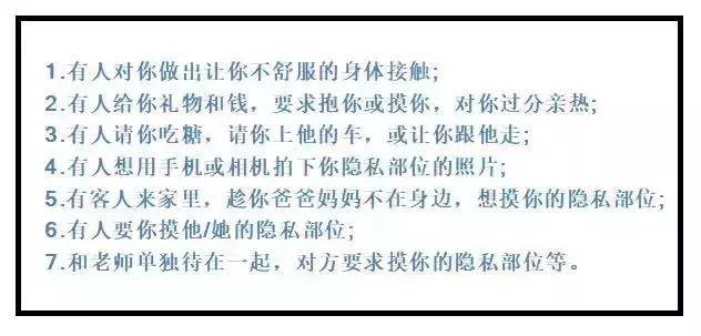 同时要告诉孩子,不可以让别人碰内衣裤遮住的地方!这一点非常重要!