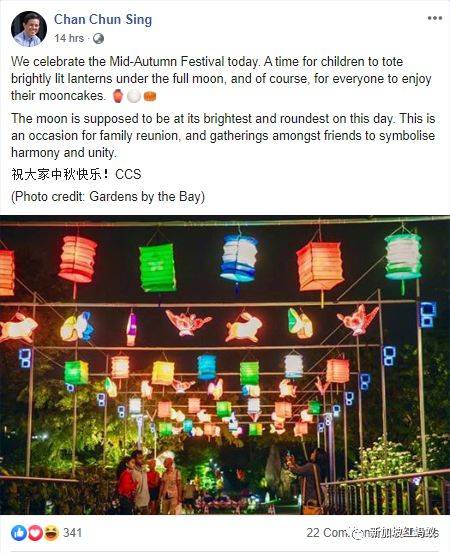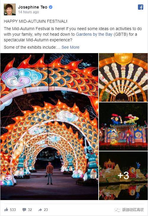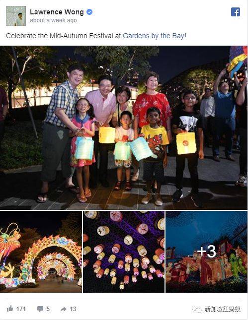今年新加坡的中秋节,有看头的不仅仅是造型丰富的大型灯饰,还有政要们热热闹闹在面簿上过中秋的“盛况”。