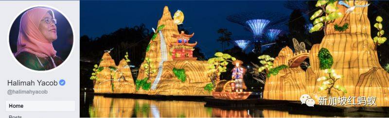 哈莉玛总统9月1日就将面簿主图换成滨海湾花园的中秋灯饰图,别问红蚂蚁为什么总统不采用牛车水嫦娥做主图,这点你我心知肚明就好。
