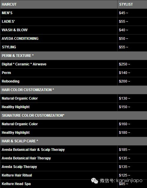 (注:资深发型师、发艺总监定价略有不同,详情请致电咨询)