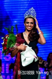 2014新加坡环球小姐总决赛8月22日在香格里拉酒店举行,23岁新加坡管理学院本科生、药品技师Rathi Menon从其他11位佳丽当中脱颖而出,成为了最后冠军。