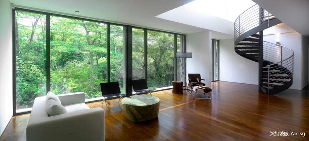 与植物园相毗邻的Botanika,面对着一大片绿地,是个环境清幽的小型豪华公寓项目,一共只有27个单位。为了突出绿色和自然的主题,Botanika公寓的所有主要房间都是面向无边的绿色。为了让公寓和自然无痕迹的结合,公寓的围墙甚至是由由透明玻璃环绕建成。不仔细看,发现不了。从视野明亮的室内望出去,绿意葱葱,感觉树林就近在咫尺,和大自然融为一体。