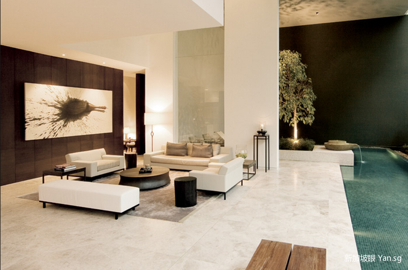 Leedon residence是永久项目,位于荷兰村附近的黄金地段。项目给人的第一感觉就是大。占地大,设施规模大,户型也大。足够的空间给了设计师大展拳脚的机会。两百米的林荫道,五十米的浅水泳池,都是大手笔。Leedon residence里的某些公寓单元,比如说四房的garden suites和sky suites,还有penthouse, 都配备有私人泳池,令人印象深刻。