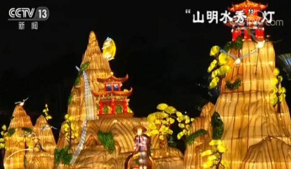 花园里最高的灯饰是12米的“山明水秀”。它模拟了水墨画中的山水之色,让人沉浸在清幽的高山流水之中。