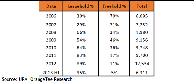 2006年和07年,市场上大部分新推出的房产项目还是永久地契项目。然而,自从2008年以来,这个趋势有了变化。市面上新推出的项目越来越多是非永久地契。这和新加坡政府近几年恢复政府售地计划,推出大量99年土地供发展商竞标的政策是紧密相连的。