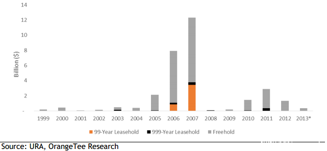 之前已经提到过,新加坡政府已经停止推出新的永久地契土地。也就是说,最近市场上广受欢迎的近地铁公寓项目,绝大多数都是99年地契的。属于永久地契的土地,由于历史原因,通常不靠近地铁站。