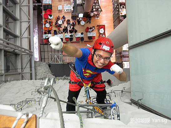 吓尿了!在乌节路商场30米高的墙壁上攀岩!