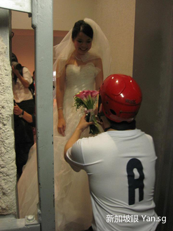 以前还曾有过一对新人,在Orchard Central商场内某餐厅举办婚礼,新郎别出心裁地爬到该30米高的攀岩墙顶端后向事先被安排在墙壁顶端那层楼附近等待的新娘送花,让事先毫不知情的新娘惊喜不已…