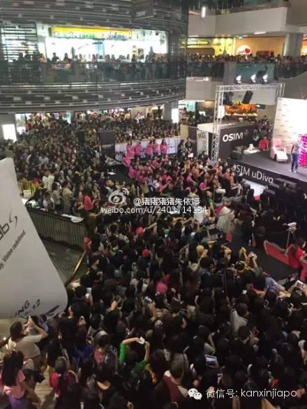 没有去现场的同学也不用觉得遗憾了,里三层外三层,上上下下三层楼,全挤满了黑压压的人。要知道,这个地点完全不是新加坡的市中心,来这么多人,那绝对是满满的真爱啊。