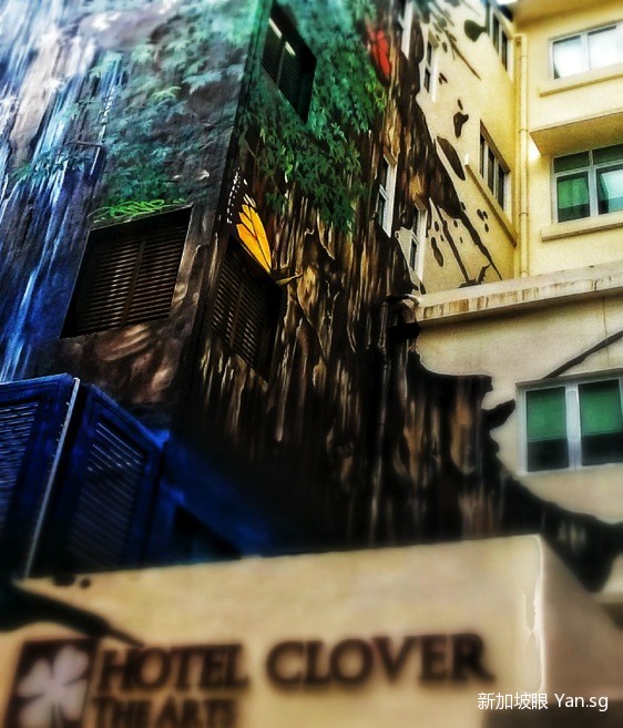 无论是沿着桥南路的酒店正门或是介于CarpenterStreet 和 Hong Kong Street (新加坡河畔/克拉码头地区)的后巷进入酒店你都会被酒店四周充满阳光朝气的墙壁绘画艺术所吸引,让人如沐浴春风。六层楼的酒店共有44间主题各异的客房。每个楼层也在长廊墙壁上延续墙上绘画艺术的特色。并以四色四叶草做为标志,凸显酒店的精神,既是:信仰、希望、关爱和幸福。