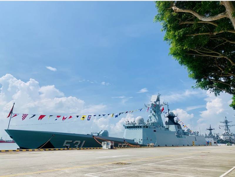今年5月,中国的“湘潭舰”,在完成海上演习科目后,还在樟宜港停靠。