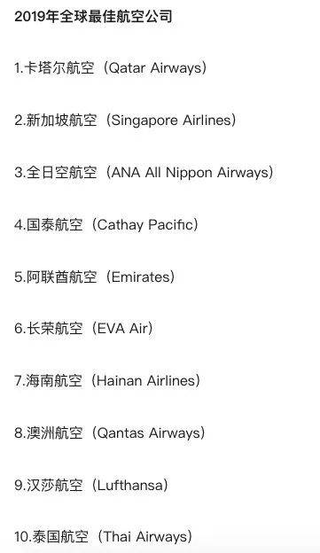今年6月,在法国巴黎举办了航空界的奥斯卡,公布了skytrax 2019年全球最佳航空公司排名。卡达尔航空击败了2018年冠军新加坡航空,重获冠军。其他名次略有变化。到底是什么理由让这些航空公司蝉联上榜呢?