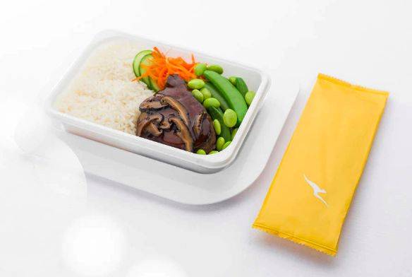 澳洲航空的客舱餐食一直以来都备受好评。澳洲境内的经济舱,免费供应红酒和啤酒。国际经济舱的菜单相当丰盛,辣味羊肉丸搭配番茄,滨海沿岸羊乳酪和烤马铃薯,蜂蜜鸡肉沙拉,和黄咖喱尖吻鲈鱼米饭,而且取消了餐盘,增加了用餐选择。起飞后还有迎宾饮料,感受不一样的经济舱。