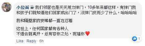 天地良心,我是投诉邻居开关门很大声、早晚经过我房间时,一路都大声讲话,真的很吵,但我向邻居反映后,他们出入已经小声了。