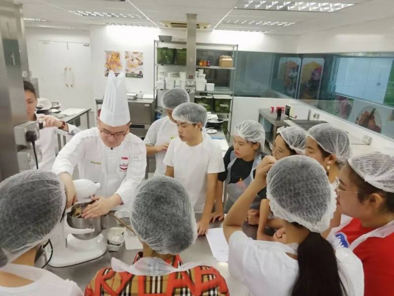 在游学期间,新加坡游学团参观了新加坡伦敦金融学院、新加坡旅游酒店学院、新加坡国立大学三所高等学府并分别进行了英语课程、专业课程以及创业课程的学习。在英语课堂上,老师采用多种趣味小程序提高学生课堂的参与度,学生们也能生动地体验中新两国在课堂教育上的不同,课间学生们自信友好的精神面貌也获得了国际友人的青睐。在专业课程上,新加坡旅游酒店学院的老师全面细致的指导学生进行西点与便当的制作,通过老师细致的教学,同学们进行了一妙趣横生的实操课。武城学子乐于助人、团结协作的精神风貌也给当地老师和学生留下了深刻印象。随后,游学团一行在陪同老师的讲解下了解参观了学校的课程体系和教学设施。在创业课程中,新加坡国立大学创业孵化基地的老师向我们介绍和分享创新创业教育成功的经验——三空间理论即将课堂、校园、社会三个空间的创业教育有机结合起来形成良性循环,同学们听后感触良多,纷纷表示回国后将更用心对待创业课程。