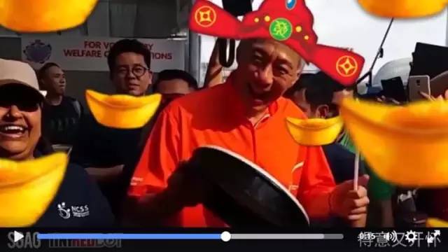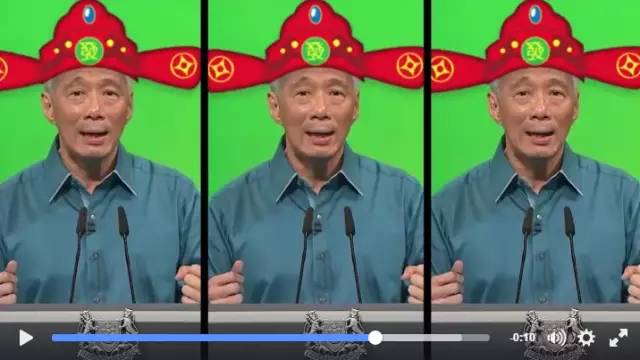 这则逗趣视频是由本地搞笑网站SGAG与经常制作搞笑音乐视频的Tiny Red Dot联手合作的。除了收录李总理国庆群众大会演说、出席活动的部分片段,制作团队还加入了特效,为李总理戴上财神帽,并放烟花。