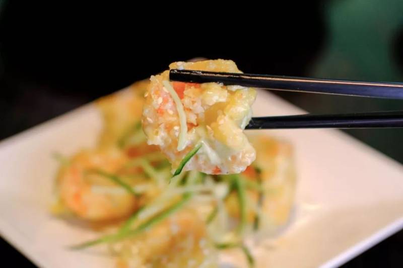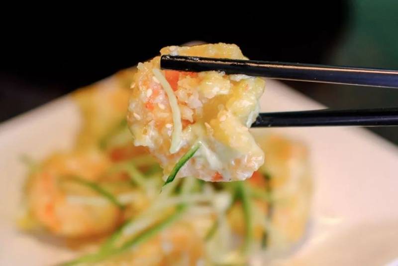 虾球的鲜、芥末的清新和蛋黄的醇厚相融合,