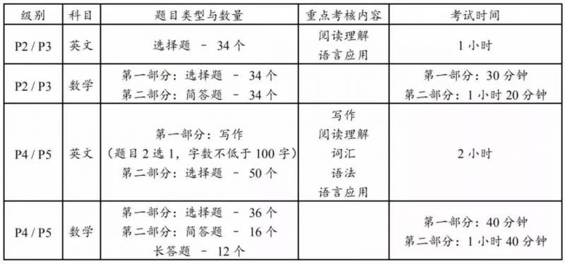 AEIS考试各年级题型