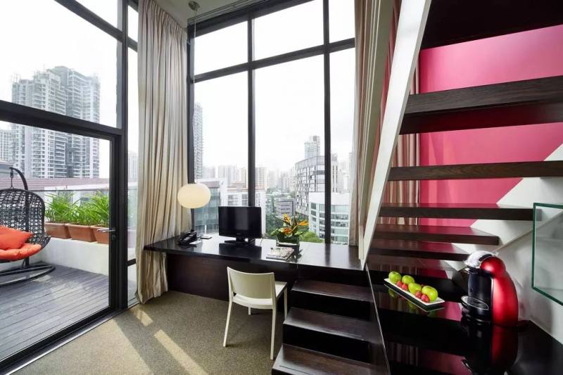小编今天带大家探秘新加坡 Studio M 酒店房间 当小编打开房门的那一刻,就被这独特的风景所震撼到! 阁楼式的房间可是在新加坡都市中的独一份儿的特别是有一半的地方被落地玻璃窗充斥,给人一种十分明亮之感。