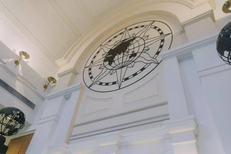 公寓采用现代与复古风结合的设计风格。大堂的挑高天窗,迎面而来一种气势磅礴之势~ 衬托黄色与棕色的地砖和中世纪设计风格的家具,设计感十足!