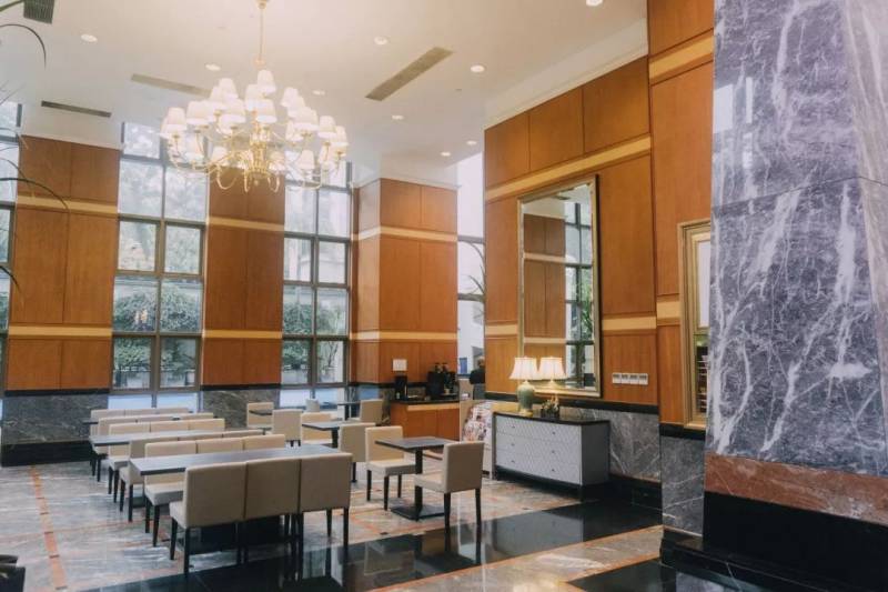 从餐厅走出去,就是室外休闲区。各式花草树木进行点缀在其中,仿佛置身于城市的绿洲花园一样。