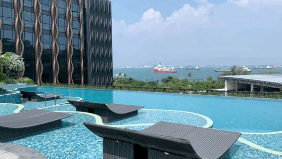 俯瞰著茂密的棕榈树群和新加坡海峡迷人景色