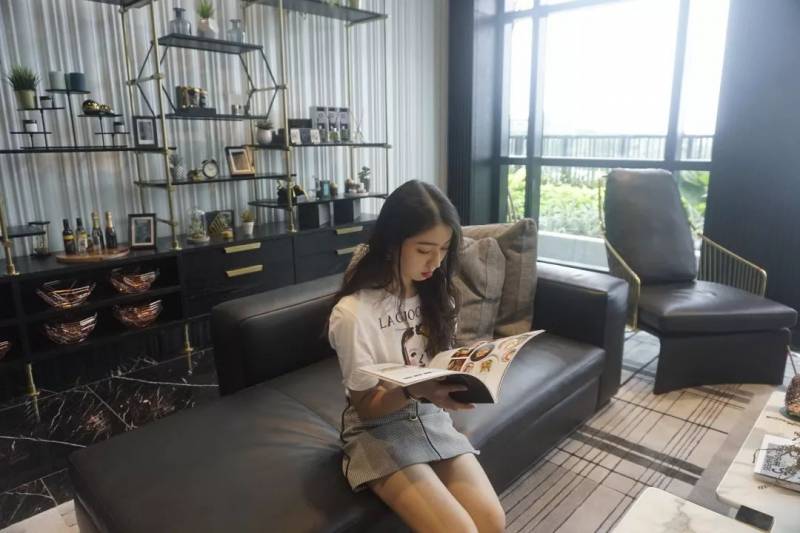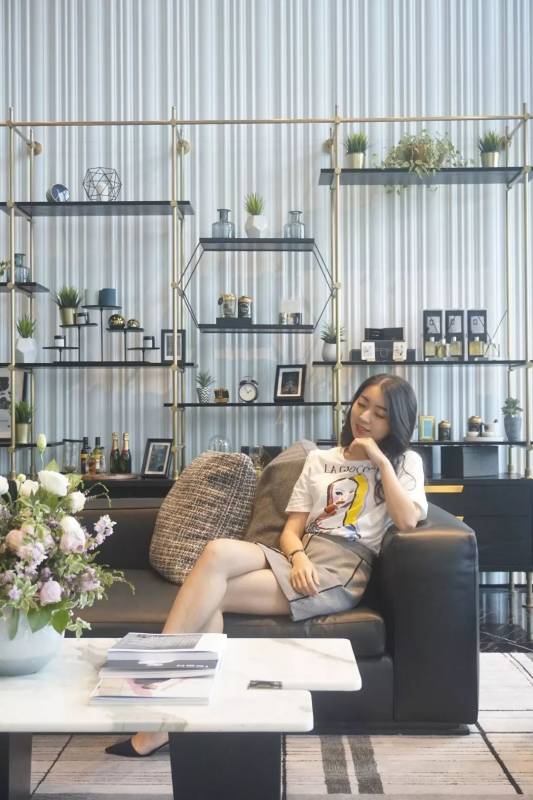 就看到简约线条设计的布置和皮革、亚麻装饰