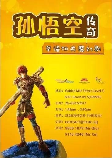 日期:26-28/07/2017时间:1:45pm 和 3:30pm票价:28元(教师免费)接下来要告诉大家一个重要资讯:本剧主创人员招收小演员, 参加系列培训课程表现优异的小朋友,就能参与《孙悟空传奇》表演,未来的小童星或许就是你啦!