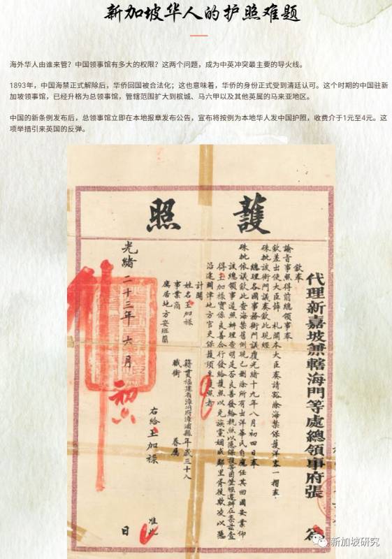 当时新加坡并没有独立外交,要在这个英殖民地设领事馆,意味着清廷必须直接和英殖民政府交涉。1877年5月,英政府在新加坡设立华民护卫司署。同年10月,中国驻新加坡领事馆正式成立。