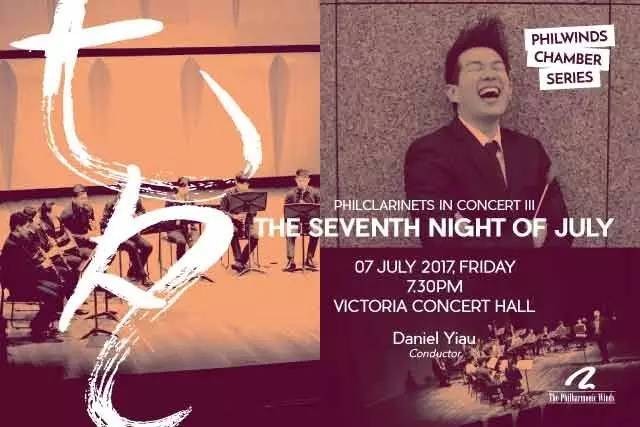PhilClarinets的2017年“爱乐乐团”系列,其第三版的室内音乐会系列“PhilClarinets in Concert III – The Seventh Night of July”。 这个音乐会将展示单簧管家庭各种成员的多功能性和色彩,并为单簧管合奏而编写和安排音乐。
