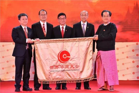 当晚进行了盛大而极具意义的闭幕式,本届大会主席吴继垣将世界华商大会会旗交给下届华商大会举办方缅甸英国中华总商会主席张进隆。张进隆会长表示,第十五届世界华商大会在英国举办,将是华商大会首次走进欧洲,他热情邀请世界各地华商莅临参加,携手合作,共谋发展,共襄盛举。