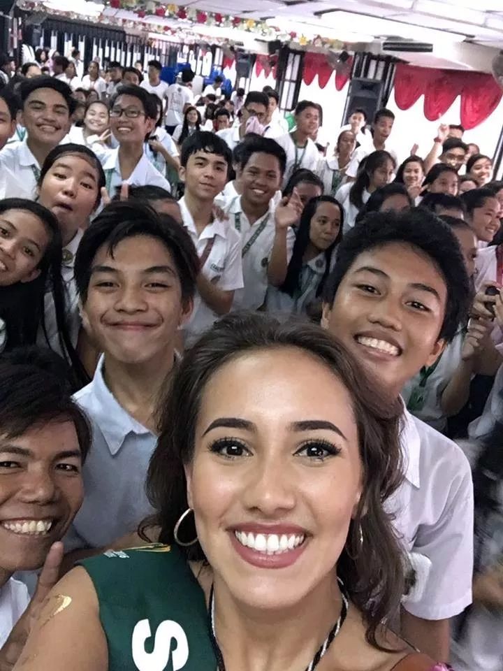 她随后前往菲律宾的马尼拉,参加世界地球小姐的总决赛。以下是她参访当地学校时,跟当地学生拍的照片。