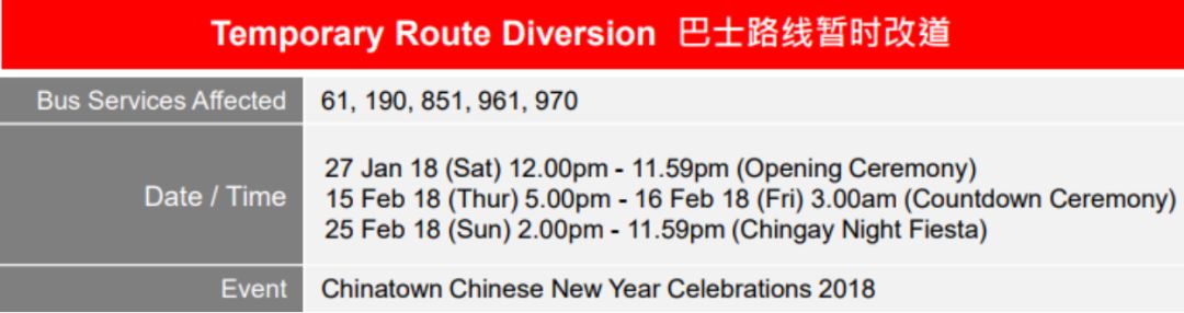 注意注意!由于牛车水新年活动,1月25日到2月25日,牛车水一带的部分路段将会封路,部分巴士将改道而行,以前通车的道路都变成了“步行街”,大家出行一定要做好准备哦~