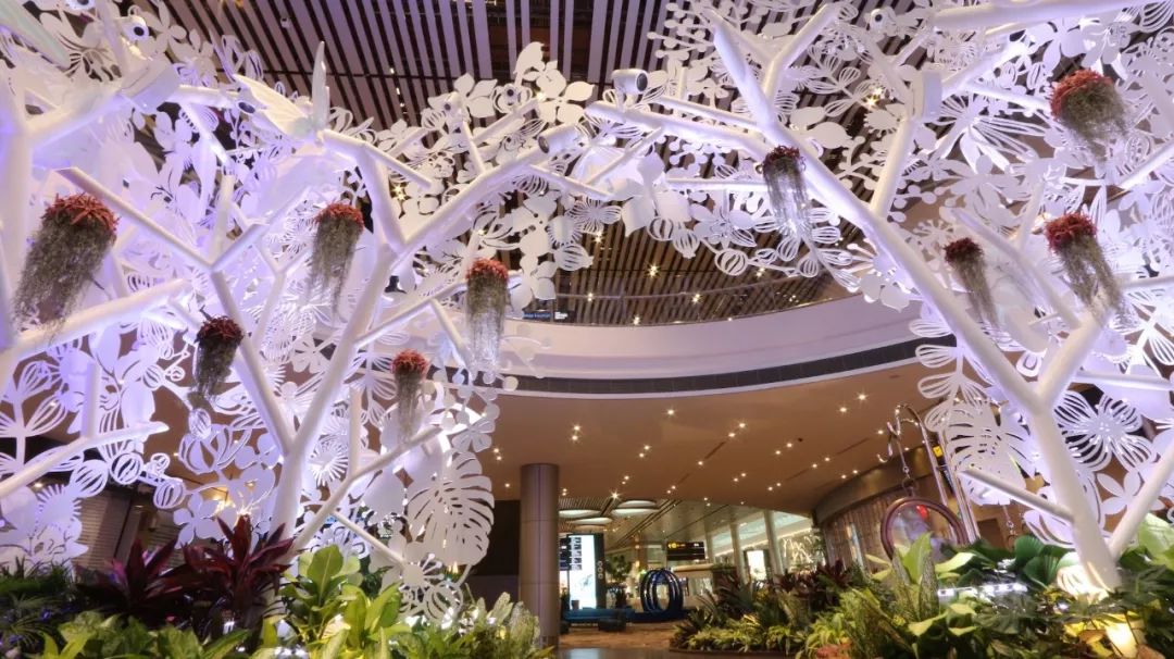 主题花园一直以来都是樟宜机场的标配!钢铁体格的花卉雕塑,足足有6米多高,搭配着各种各样的花草,再打上灯,简直美到没有朋友。