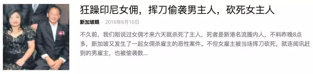 这也解释了新加坡很多女佣杀雇主的案件中,大多都是印尼女佣的原因。而且印尼和新加坡近,她们跑回去一躲,很难被找到,而且,印尼可以比较容易地买到新的护照身份。