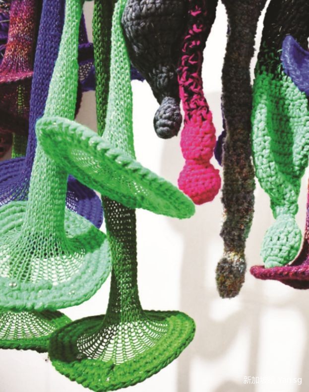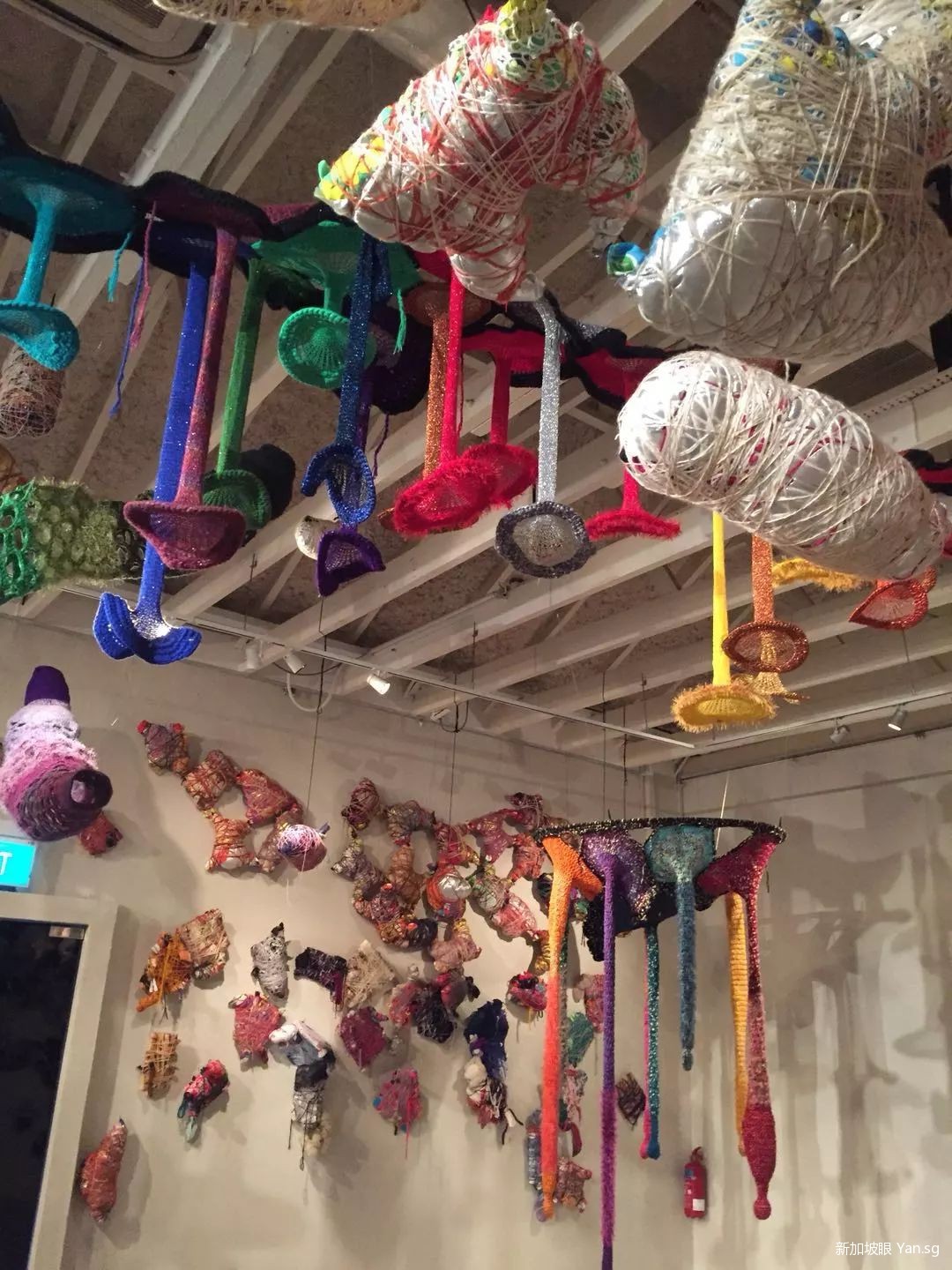 展区内里面还有用五颜六色的毛线织的装饰品,点缀着一片白色的空间~