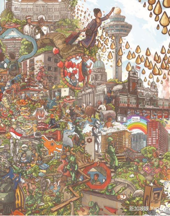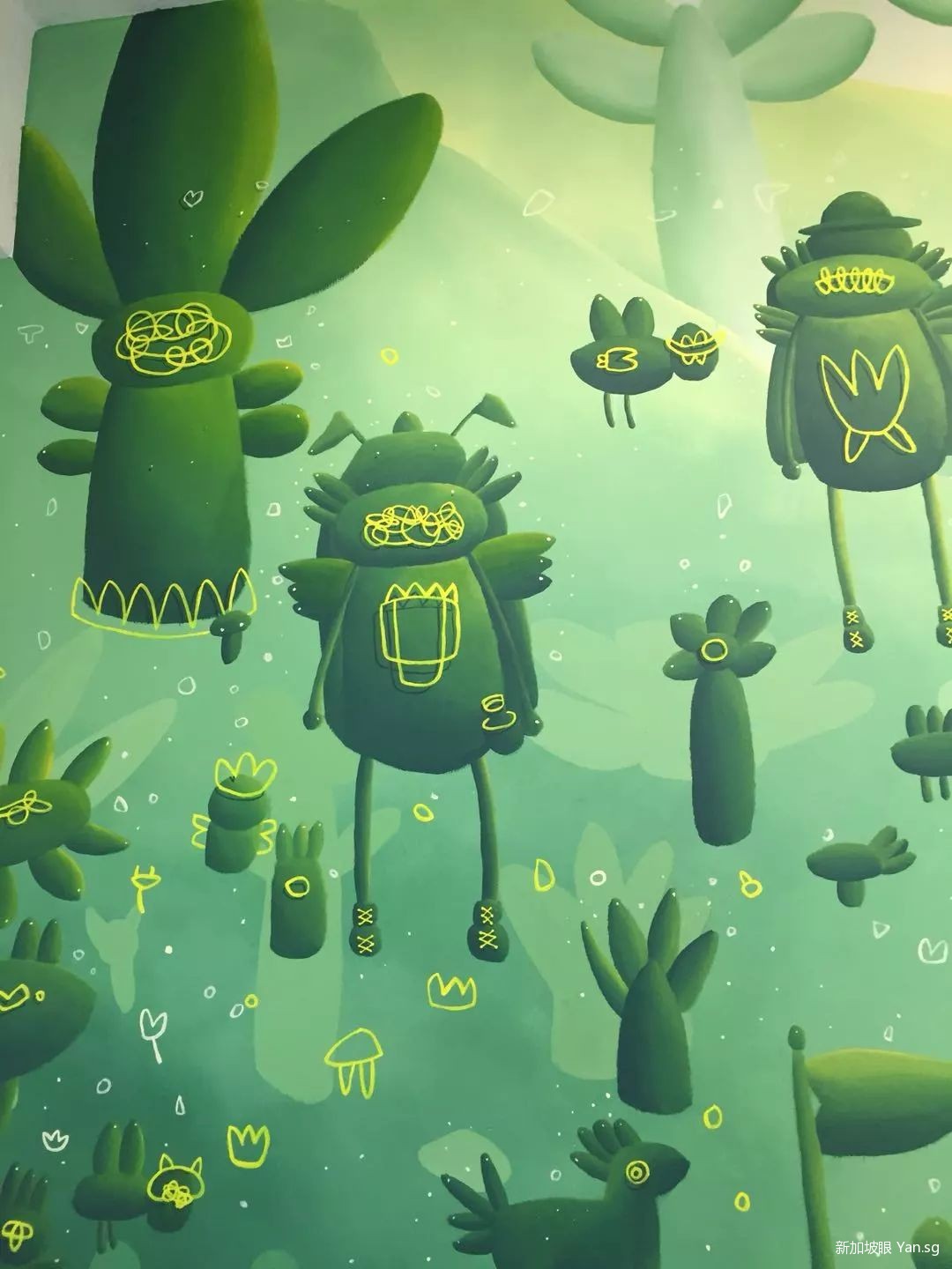 新加坡的各种地标建筑,什么鱼尾狮,珍珠坊,全都汇集在一个墙壁上~
