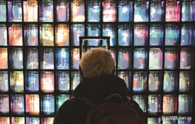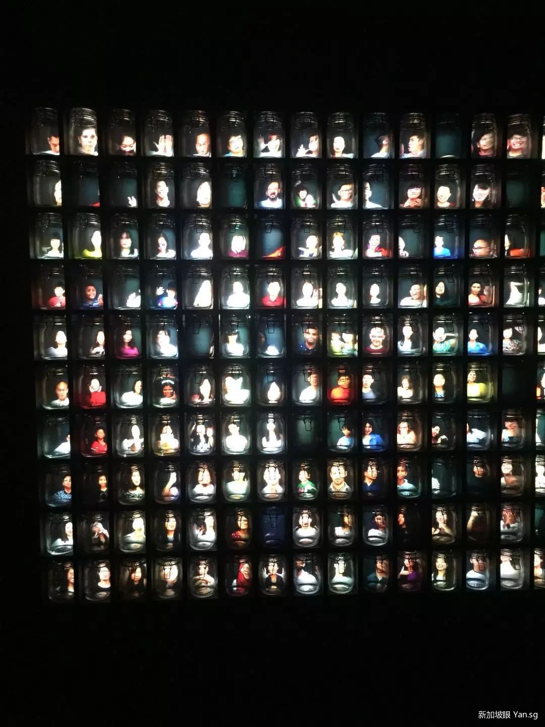 一进入展区,映入眼帘的就是一排排玻璃罐子,每个玻璃罐子上映着五彩斑斓的影像,让人眼花缭乱~定睛一看,这些影像怎么这么眼熟,原来都是站在摄像头前的人的头像诶~