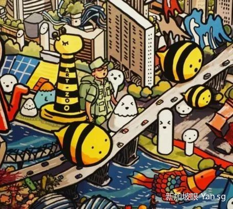 展区内还有相当复古风的涂鸦,呈现出新加坡在不同时期的样子。