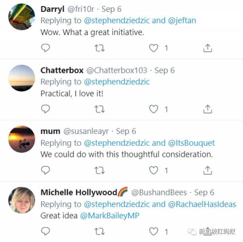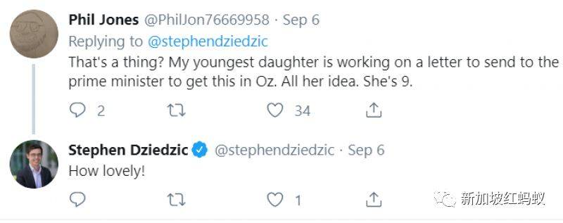 竟然有这样的事?我最小的女儿正在给总理写信,希望澳大利亚能有这样的措施。这是她的主意,她今年9岁。Stephen Dziedzic看了这个留言立即回说:太美妙了!