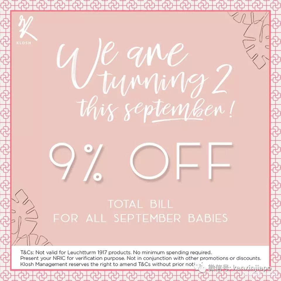 九月出生的顾客,无需最低消费即可享受9%的优惠