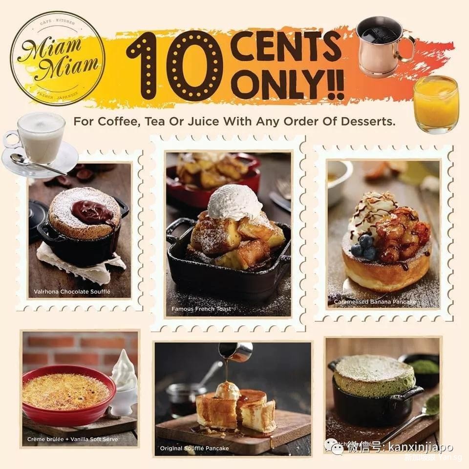 订购任何甜点,只花$0.1即可享受咖啡/茶或果汁