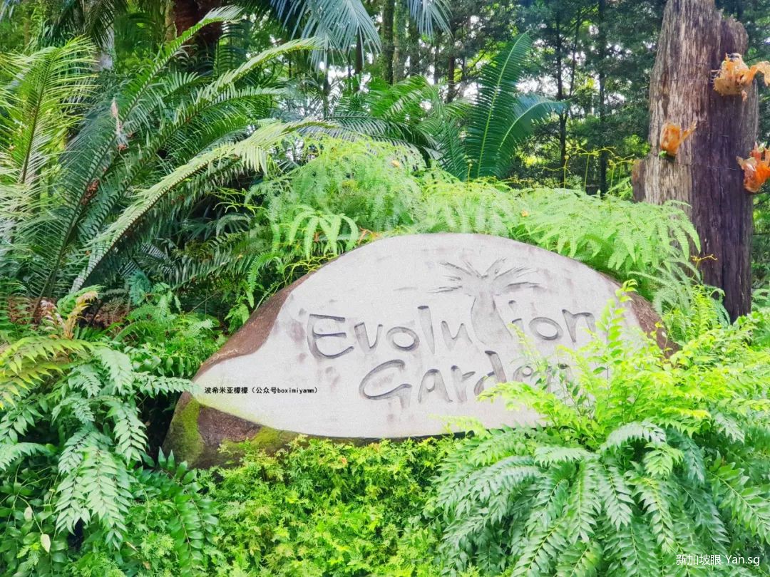 Evolution Garden占地1.5公顷,以时间为轴,极速穿越到地球出现生命之前,然后跟随进化史旅行,从地球出现第一个生物体开始,直到演变为现代植物。