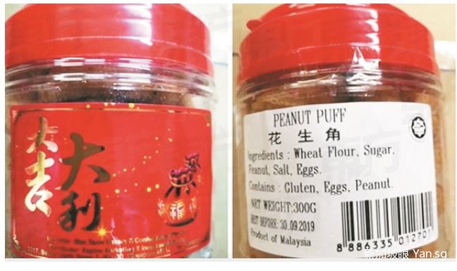近日,新加坡一款叫“大吉大利”的花生角被新加坡农粮局下令召回并下架,原因是有消费者举报称在购买的花生角中发现了铁碎片!